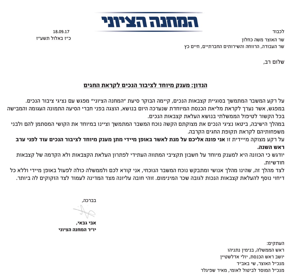 על רקע הקושי שהודגש על ידי נציגי המאבק עמם נפגשנו הבוקר, פניתי לשרים כחלון וכץ בדרישה לאשר מידית מענק מיוחד לנכים, עוד לפני ערב ראש השנה.