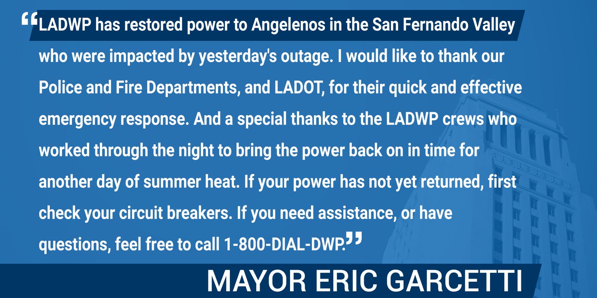 BREAKING: Power has been restored in the San Fernando Valley. Have a great Sunday, Angelenos!