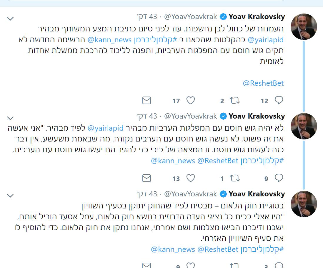 יאיר לפיד ממנהיגי כחול לבן ראיון בערוץ 12. https://www.youtube.com/watch?v=4BrE4P5VUho …