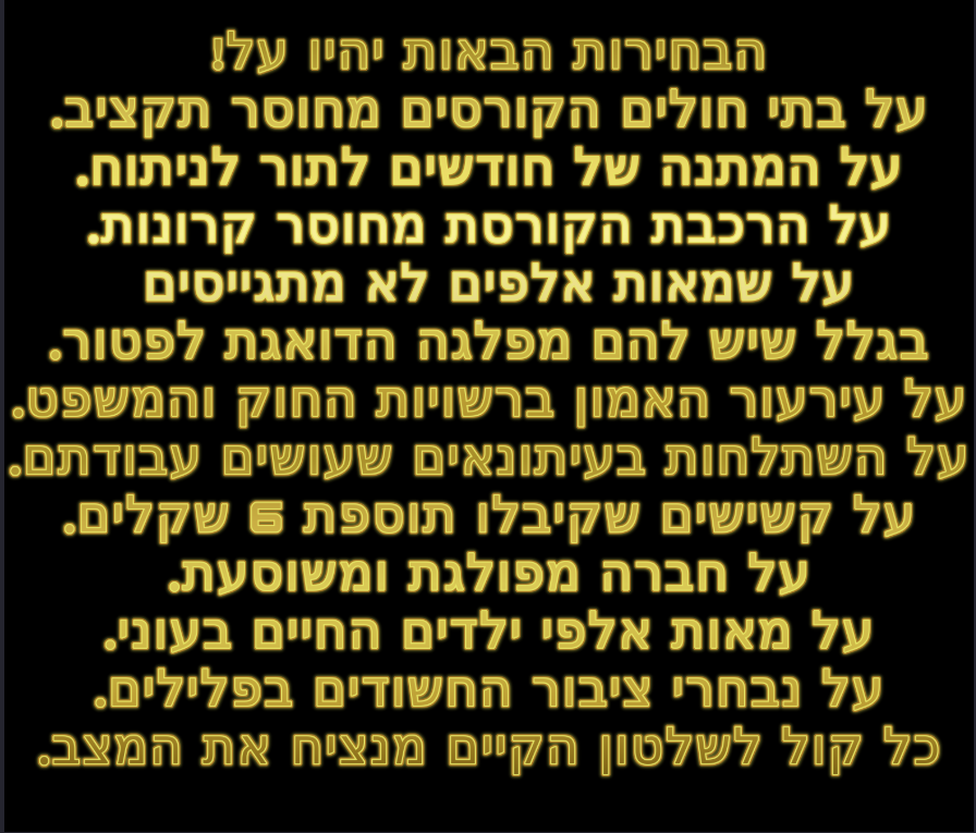 כשהולכים לקלפי בקרוב אסור לשכוח את העוולות האלה.pic.twitter.com/JoYwIFo526