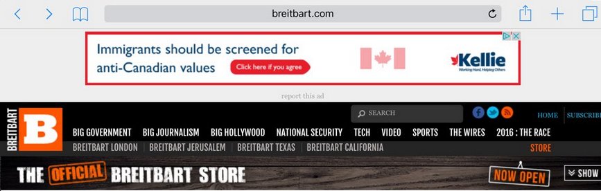 So, both Kellie Leitch and Kevin O'Leary have ads running on Breitbart News. Isn't that special?pic.twitter.com/APxSg3oh9p