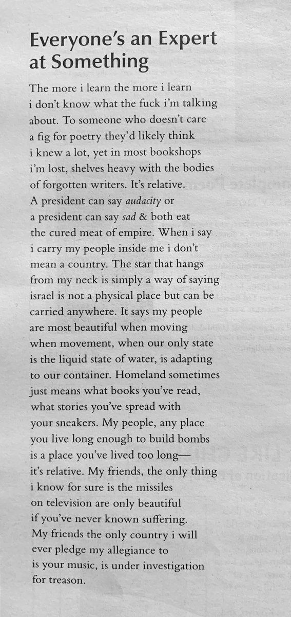 My poem “Fragment” among so many beloveds; I believe the plural of beloved is a homeland. A homeland of us in this beautiful book.