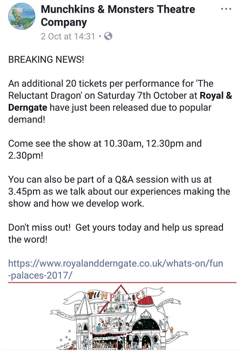 Extra tickets added to all 3 performances of The Reluctant Dragon at ! Details below