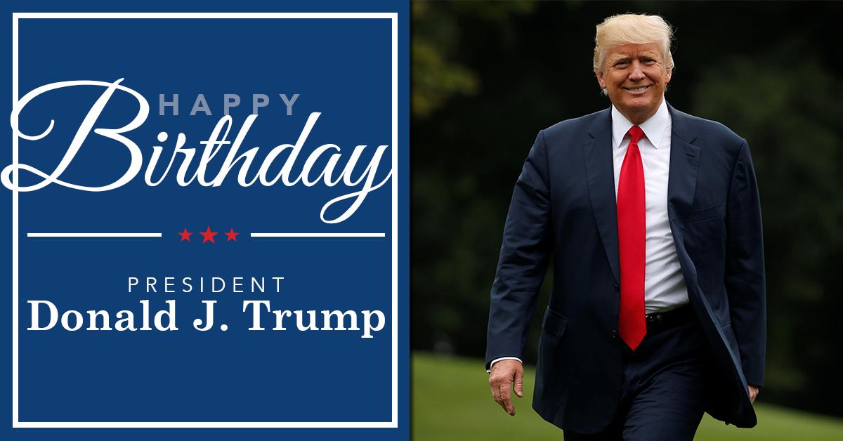 @realDonaldTrump’s BIRTHDAY! RT to wish our GREAT President a HAPPY BIRTHDAY!pic.twitter.com/OOMKAzReqV