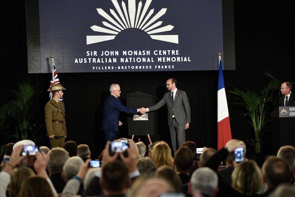 It was a privilege to be at the opening of the the Sir John Monash Centre at Villers-Bretonneux today - a moving and powerful commemoration of the courage and sacrifice of our young personnel who fought on the Western Front. Lest We forget.pic.twitter.com/jsqiT6F2HN