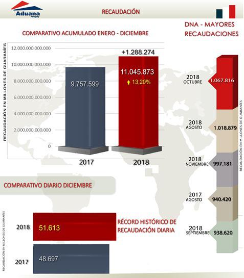 Cerramos el año recaudando más de 11 billones en aduanas! Quiero felicitar el gran esfuerzo del equipo, durante nuestra administración se rompió varias veces el umbral del billón mensual y obtuvimos un aumento de casi 1,3 billones (13,2%) más en comparación al año anterior!pic.twitter.com/lobSj9mTNO