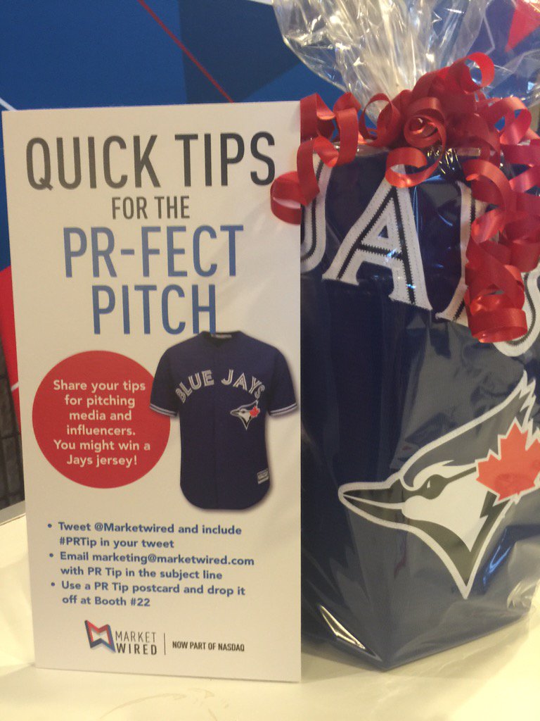 #WPRF2016 friends, don't forget to share your PR Tips at Booth 22 (or tweet to us) and you just might win yourself a Jays jersey... -