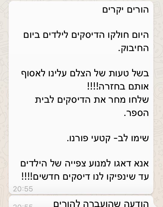 פרסום ראשון : תלמידי שכבת ו׳ בבית ספר יוקרתי בחיפה קיבלו דיסק פורנו במקום דיסק סרט סיום . הנה ההודעה שהועברה להוריםpic.twitter.com/PZiaqsk9DI