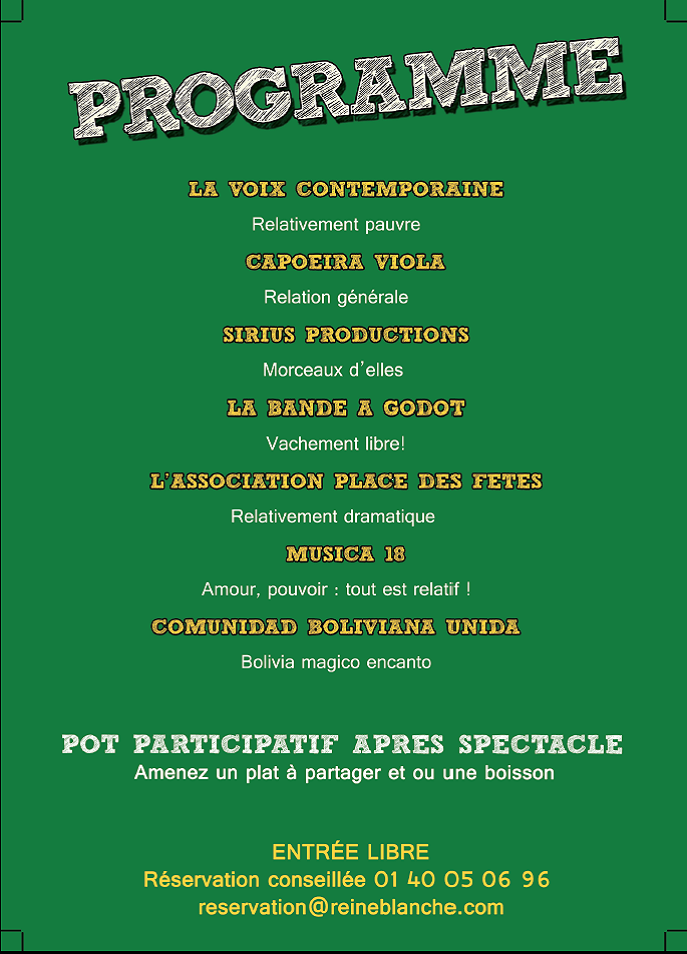 @MDA18e se mettent en scène au@LaReineBlanche rdv le Samedi 24 Juin à 19h,@mairie18paris@jpdaviaud@PaulineVeronpic.twitter.com/9VzZDhrkhS