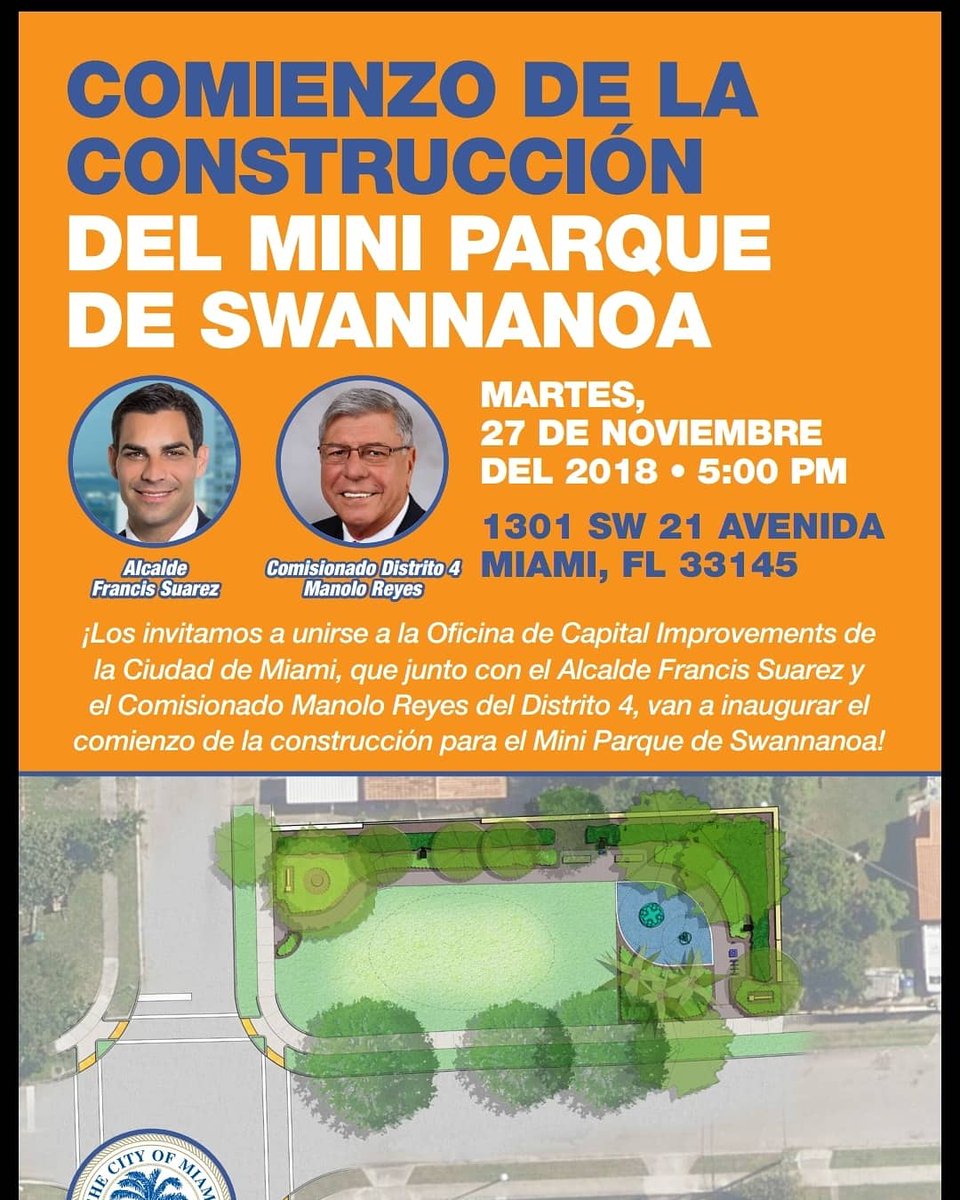 #Miami neighborhoods by creating active spaces for our residents. Thanks to Commissioner@Manolo4Miami for your leadership on this project!pic.twitter.com/bF0tqj6lyw