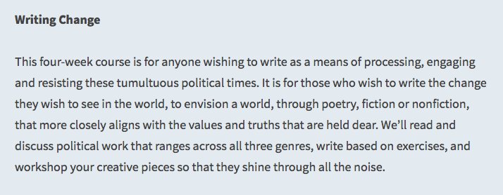 I'm putting together a course called Writing Change and would love to hear any recommendations of short fiction and lyric nonfiction to incorporate into it. Thanks!