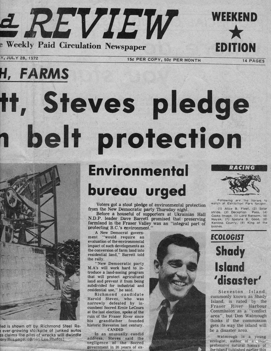 Remembering Dave Barrett (2): The night I was nominated Barrett announced the ALR. "Barrett, Steves Promise Green Belt Protection" "that will protect agricultural land and prevent it from being subdivided for residential & industrial usepic.twitter.com/AK2HEKt0k0
