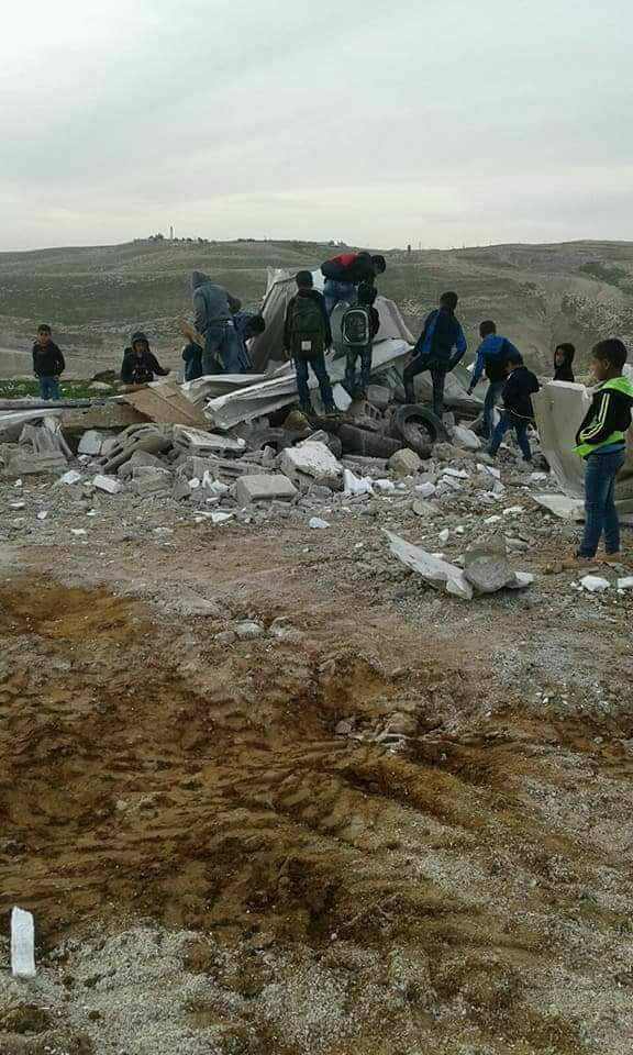 This morning, 4 Feb. 2018, Israeli occupation forces arrived in the Abu a-Nawar community and demolished two buildings at the community’s school. The classrooms were used by 25 children in the 3rd and 4th grades. The buildings were constructed with funding from the European Union