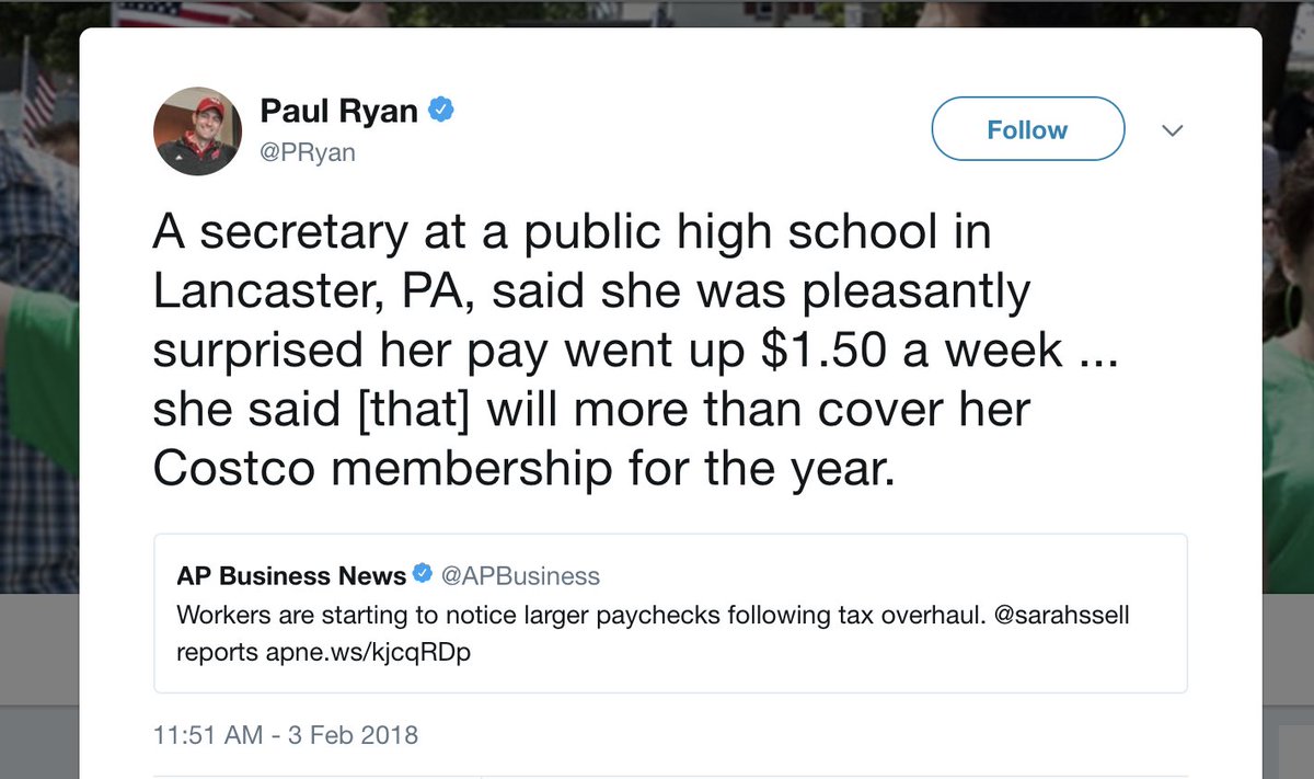 Paul Ryan deletes tweet praising $1.50 pay hike from GOP tax plan after intense backlash http://hill.cm/PqPNKZ1 pic.twitter.com/B7h97N8Yk1