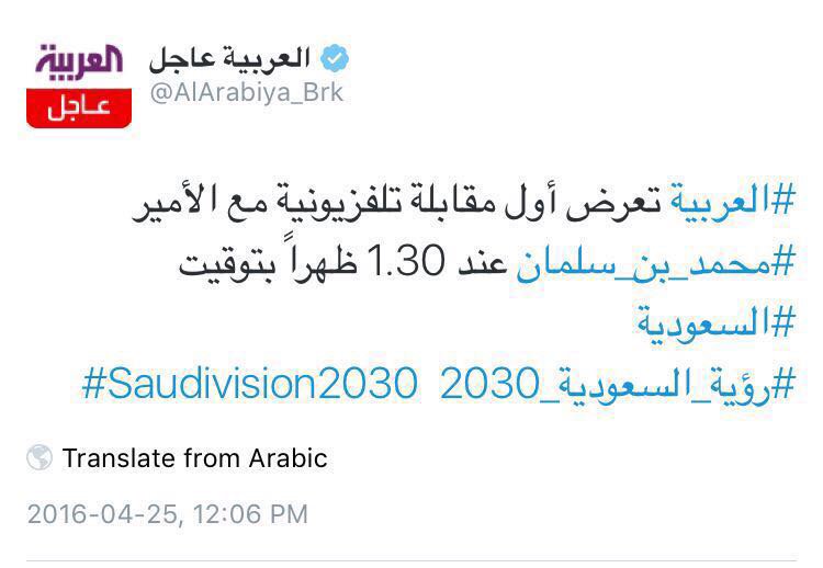 #تركي_الدخيل يجري اول مقابلة تلفزيونية مع#ولي_ولي_العهد الأمير#محمد_بن_سلمان حصريا على قناة#العربية غداًhttp://youtu.be/Rw6rvwjOk7E07:17 ಪೂರ್ವಾಹ್ನ - ಏಪ್ರಿ 24,2016 · ವಿವರಗಳು1,878 ಮರುಟ್ವೀಟಿಸುವಿಕೆಗಳು 1,052ಇಷ್ಟಗಳು