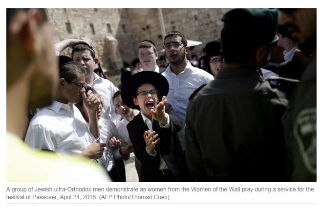 متدينون يهود غاضبون على يهوديات من حركة "نساء الحائط" تحدينهم وأتين للصلاة في حائط (البراق) حيث يرفضون وجود النساءpic.twitter.com/D5g9C5WJdw