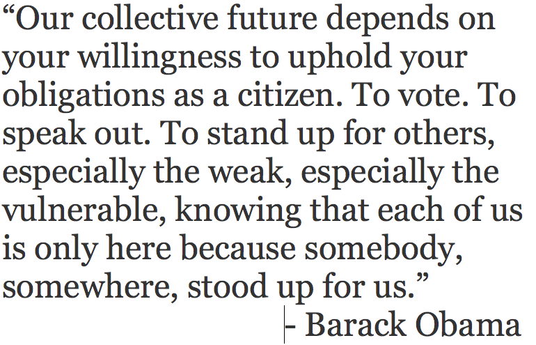 "Our collective future depends on your willingness to uphold your obligations as a citizen. To vote."
