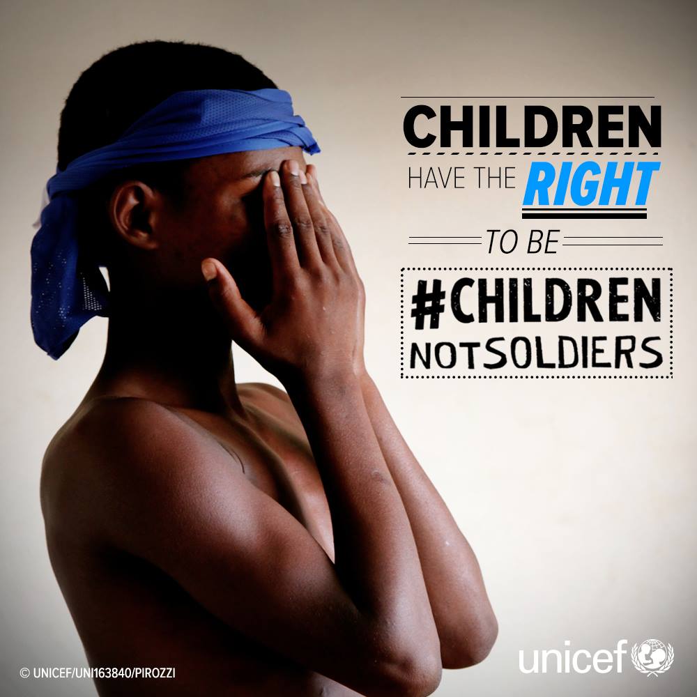 @unicef: Children should be#childrennotsoldiers. Demand action to end it... http://uni.cf/2412H5j pic.twitter.com/O40Y6IpykM