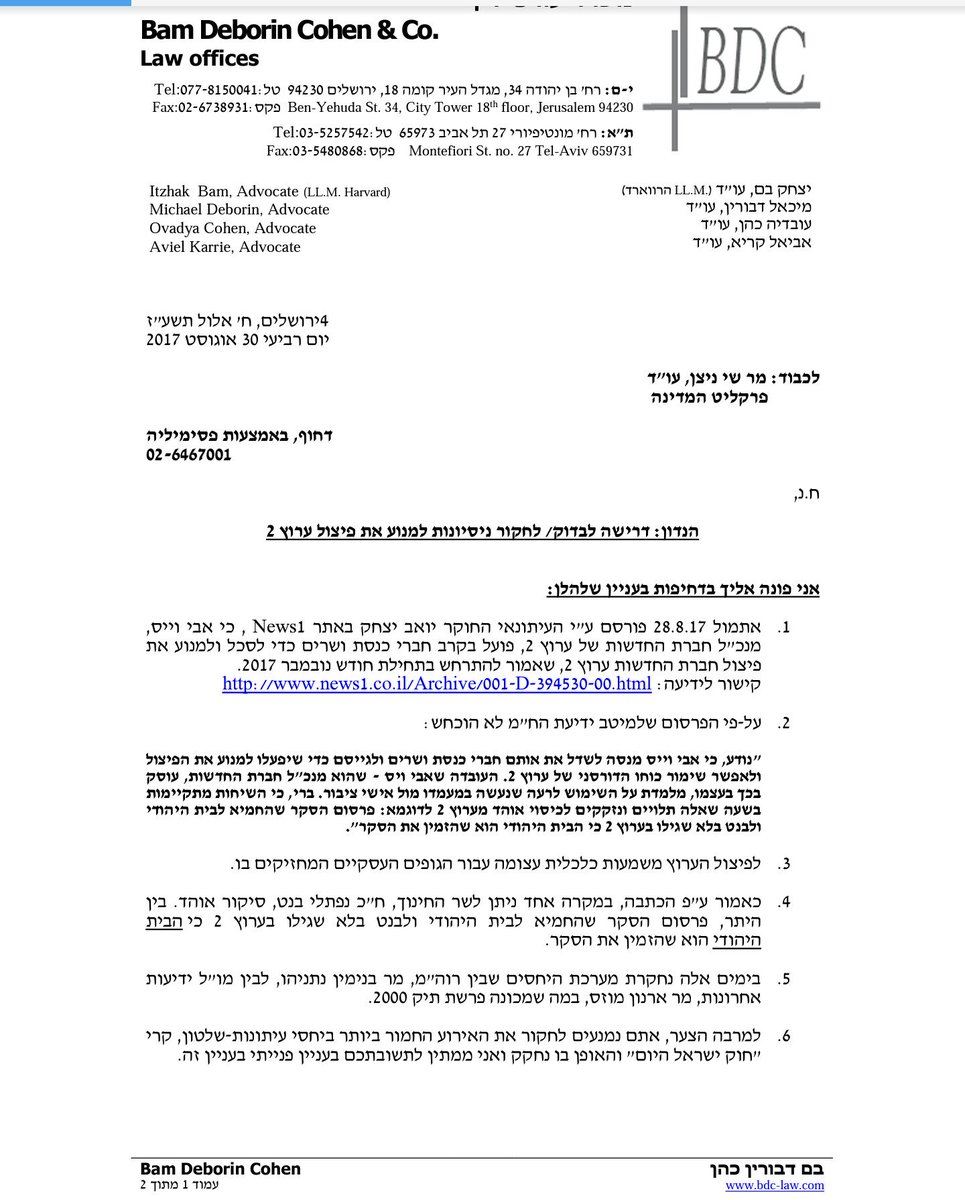 נמאס מאכיפה בררנית! מכתב הדורש ממנדלבליט לחקור את חוק ישראל היום כבר נמצא אצלו. כעת, עו"ד דבורין דורש לחקור את פרשת אבי וייס ופיצול הערוצים.https://twitter.com/michael_dvorin/status/902658078679732237 …