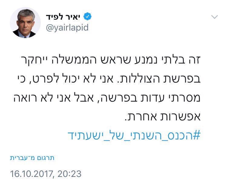 @yairlapid שכינה את נתניהו בוגד ממשיך לכזב. גם אחרי עדותו ועדויות יעלון וגנור הודיעו מנדלבליט וניצן שנתניהו לא מעורב בתיק הצוללות.pic.twitter.com/UbxRVftox3