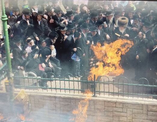 כפי הבטחתו בשבת שרף כעת הרבי מויז'ניץ עשרות פלאפונים בשריפת חמץ, כשהוא חבוש ב'קולפיק' החסידים שרו 'תמחה את זכר עמלק'pic.twitter.com/etcgqiBKjX