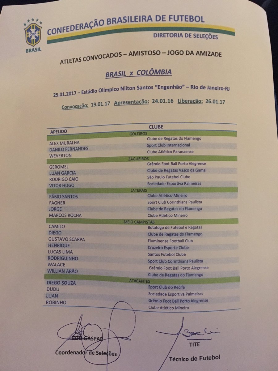 Para a partida, o técnico Tite convocará apenas jogadores que atuam no Brasil!
