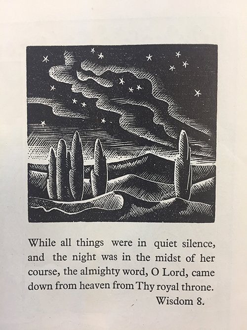 14. A stunning print by David Jones, printed by Hilary Pepler for a 1938 card catalogue