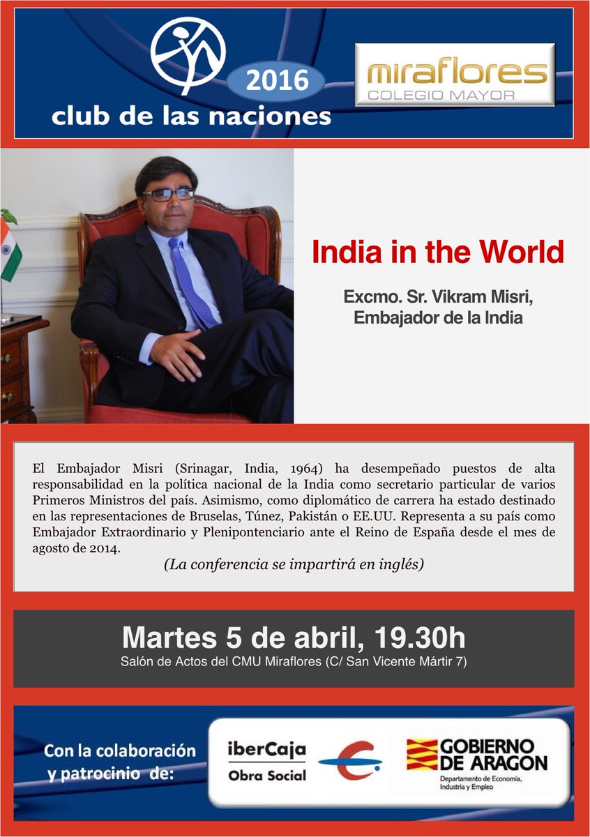 15. Conferencia (en inglés) de Embajador India en España Martes 5, 19.30h