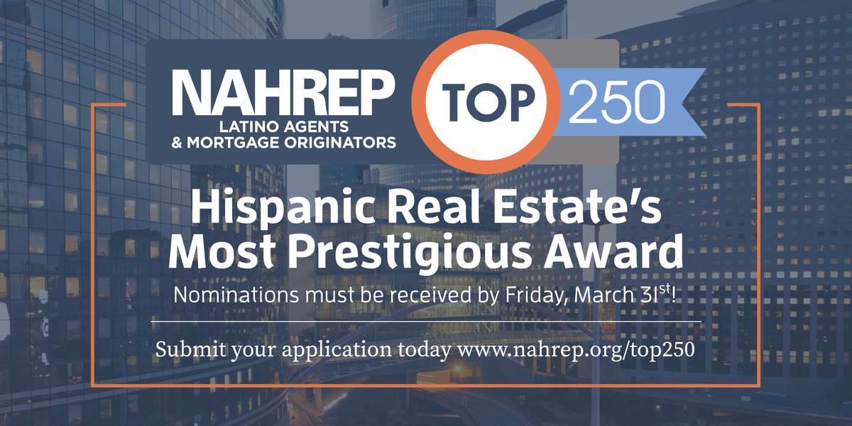 Now accepting applications for the Top 250 Award, the most prestigious award in Hispanic real estate. Apply at http://www.nahrep.org/top250 pic.twitter.com/gGkzjy35KC