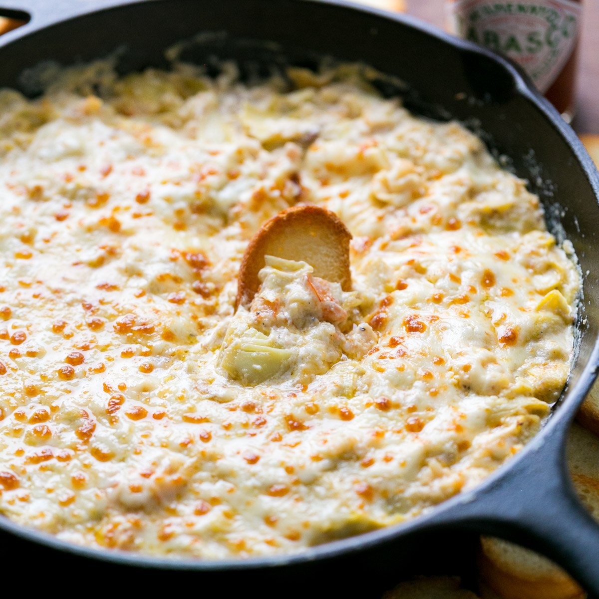 Easy, cheesy, 1-Pan, Holiday Shrimp Artichoke Dip sponsored by