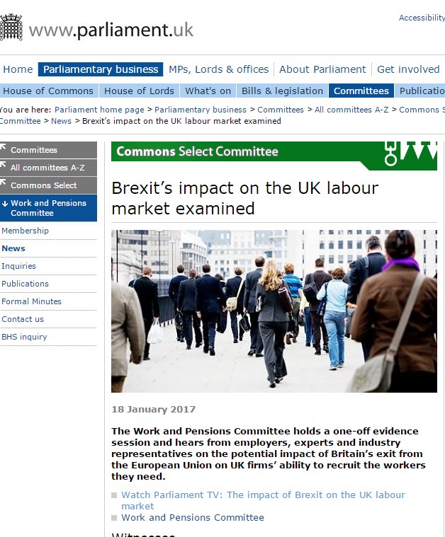 5. Our is giving evidence to HoC Work& Pension Cmtt on Brexit’s impact on UK labour market- watch here: