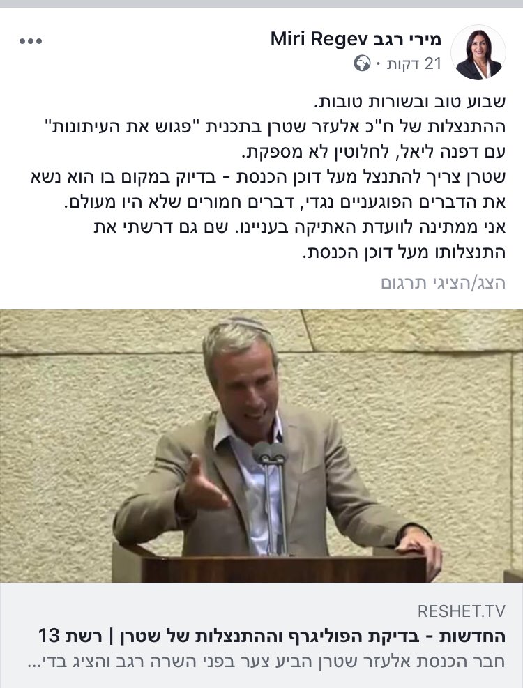 מירי רגב כבר התנצלה בפני בני גנץ?