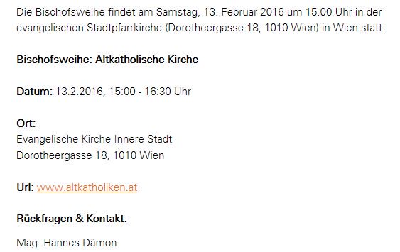 Wie heißt der Verantwortliche für diese Presseaussendung zur Bischofsweihe? (Auflösung ganz unten)