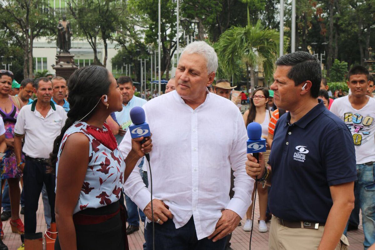 Alcalde Cesar Rojas con desde el Parque Santander hablando sobre seguridad.
