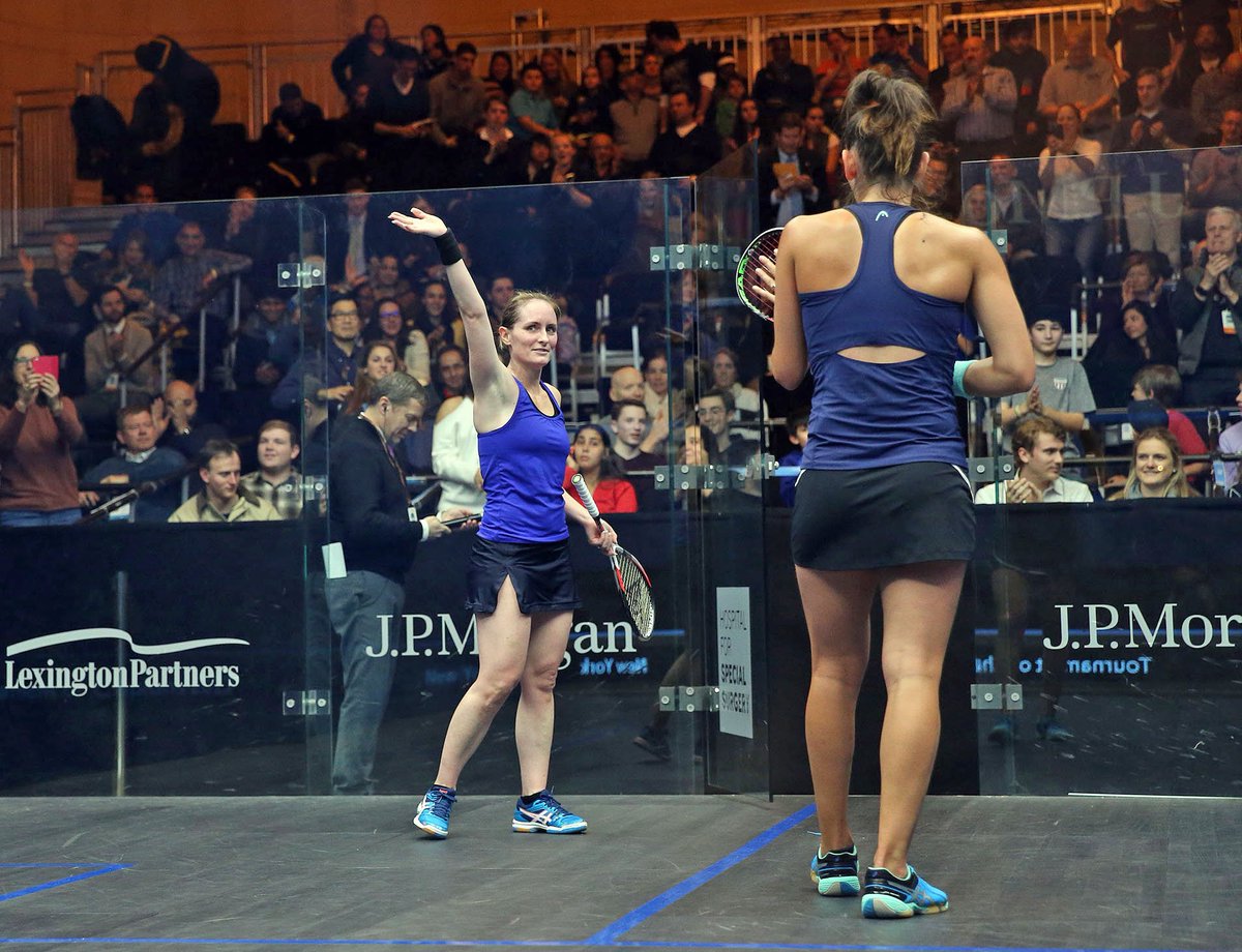 @NicolDavid and@noursherbini are going to 5 in a great match so far!!#tocsquash -