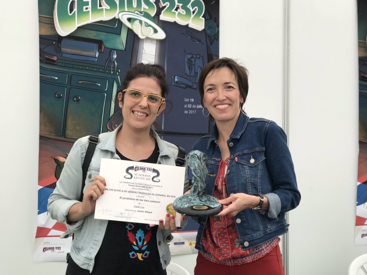 Felices de haber recogido el premio para El problema de los tres cuerpos de traducido por 🏆☀️☀️☀️📚🔝