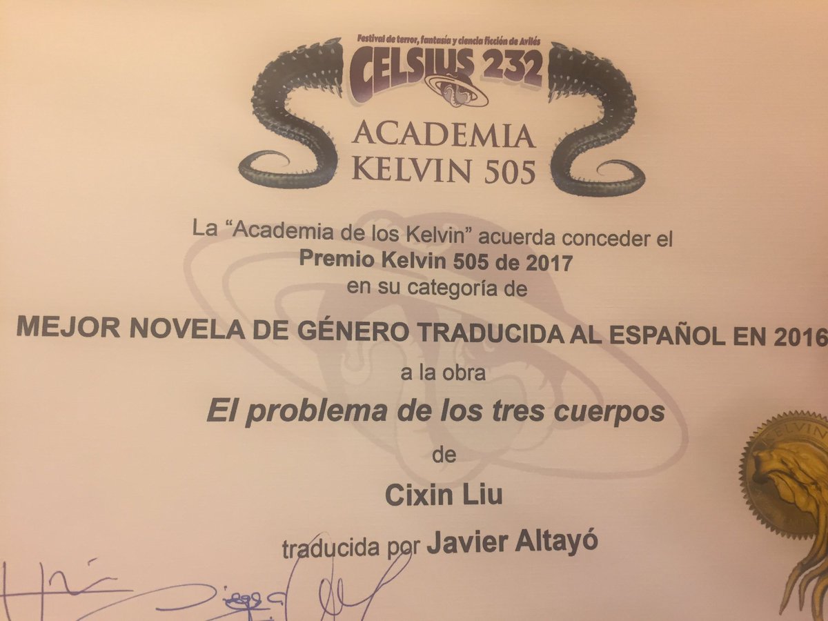 ¡Ya hemos recogido el Premio Kelvin para "El problema de los tres cuerpos", de Cixin Liu! ¡Muchas gracias! 🔥🔥🔥