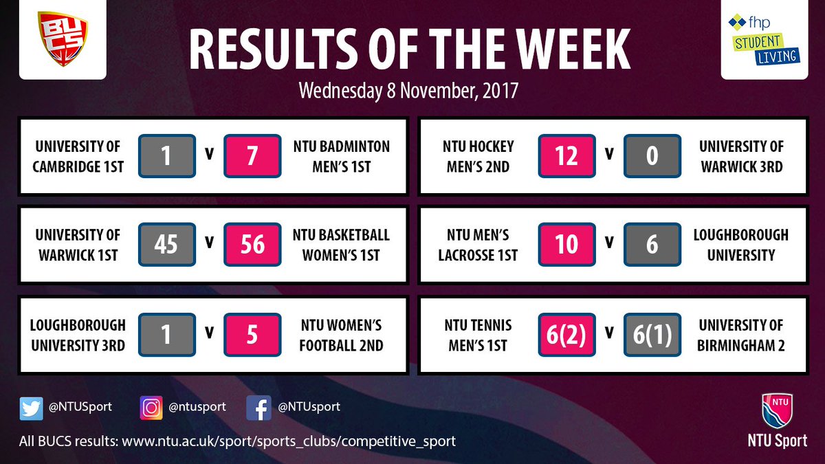 #WomensWednesday for some of our female teams, but we cant ignore@TrentHockey &@NTUFootball's huge away wins!#ROTWpic.twitter.com/UbnApCYoDn