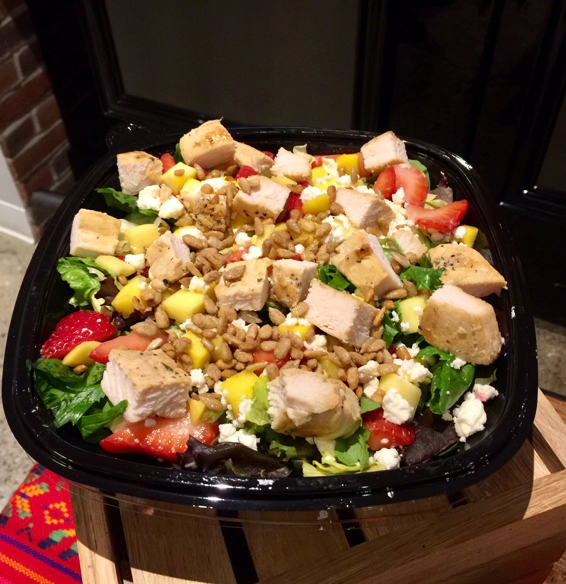 for @Wendys new seasonal mango chicken salad featuring fresh greens & strawberries. 3 servings of#veggies!