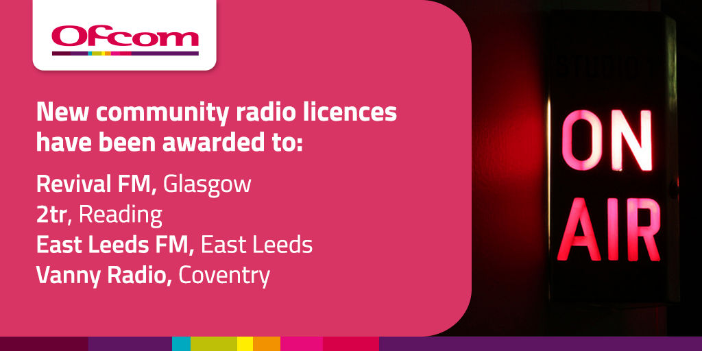 Eight new community radio licences have been awarded today in Scotland and England. Find out more: