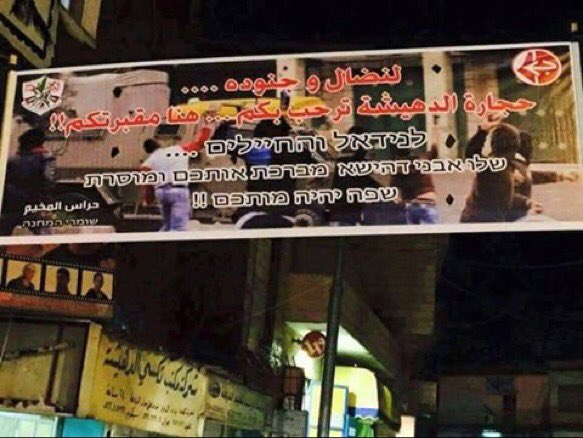 לוחמה פסיכולוגית נוסח דהיישה. זה השלט שהמתין לחיילי צהל כשנכנסו למחנה. לשלט כבר לא שלום..pic.twitter.com/o97gmB9DFi
