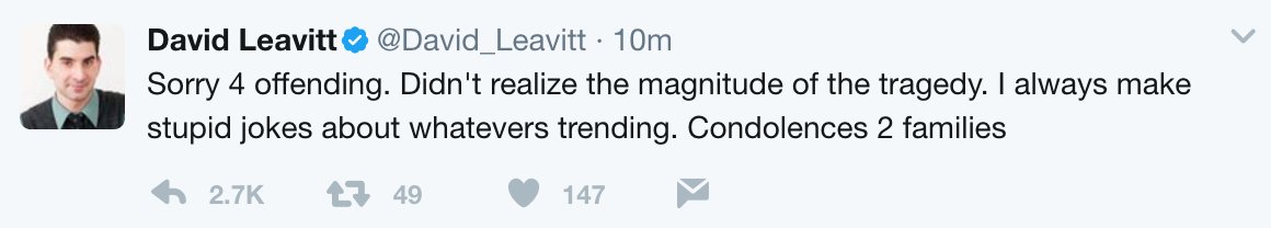 @David_Leavitt, if the shitty joke didn't land the first 4 times you said it, don't use a tragedy to make it go viralpic.twitter.com/p0CZ0C6QfO
