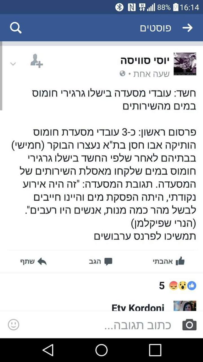 אז כפי שהתפרסם בפייס: 3 עובדי מסעדת אבו חסן בת"א הם החשודים שהשתמשו במים מהאסלה להכנת חומוס.