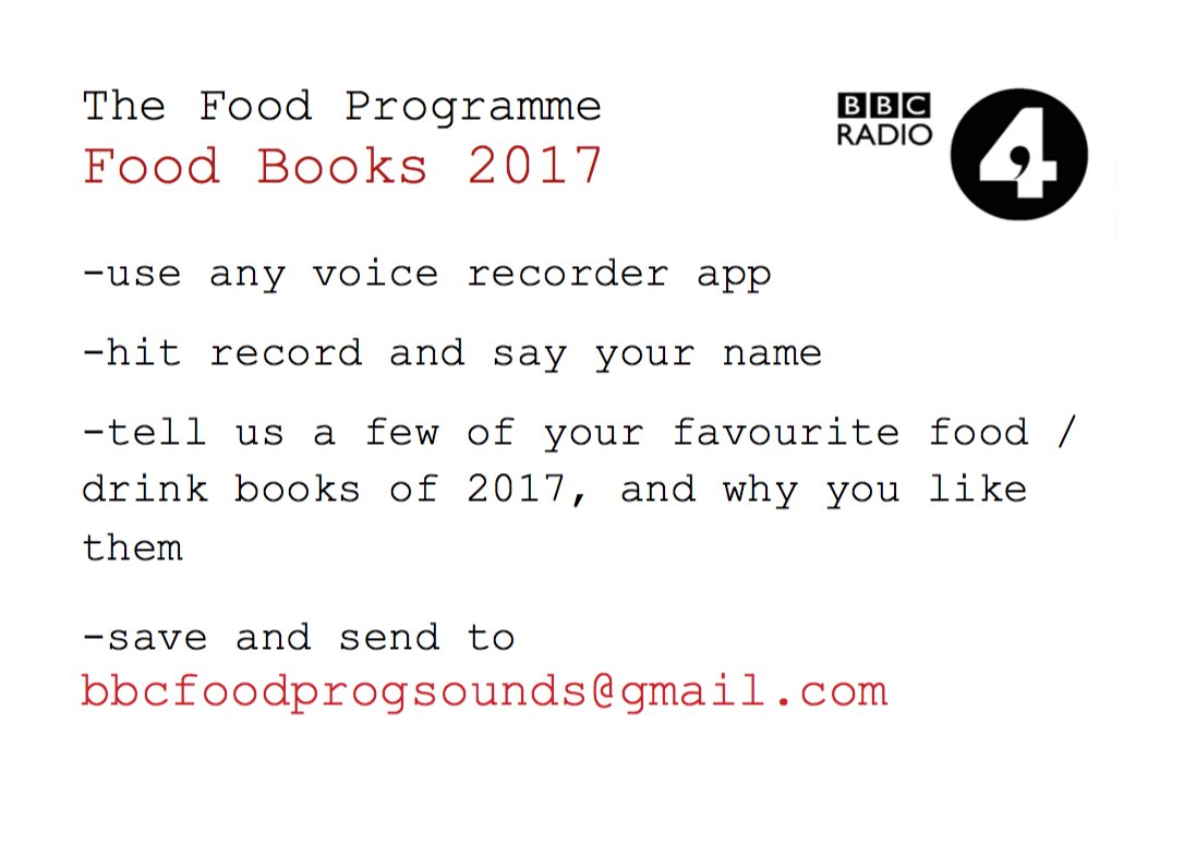 CALLING ALL FOOD, DRINK and BOOK LOVERS. Be a part of our upcoming books programme. Share your 2017 favourites, from the big names to hidden secrets. What's inspired/fascinated you? Let us know. Here's how:pic.twitter.com/quiEXyEOtk