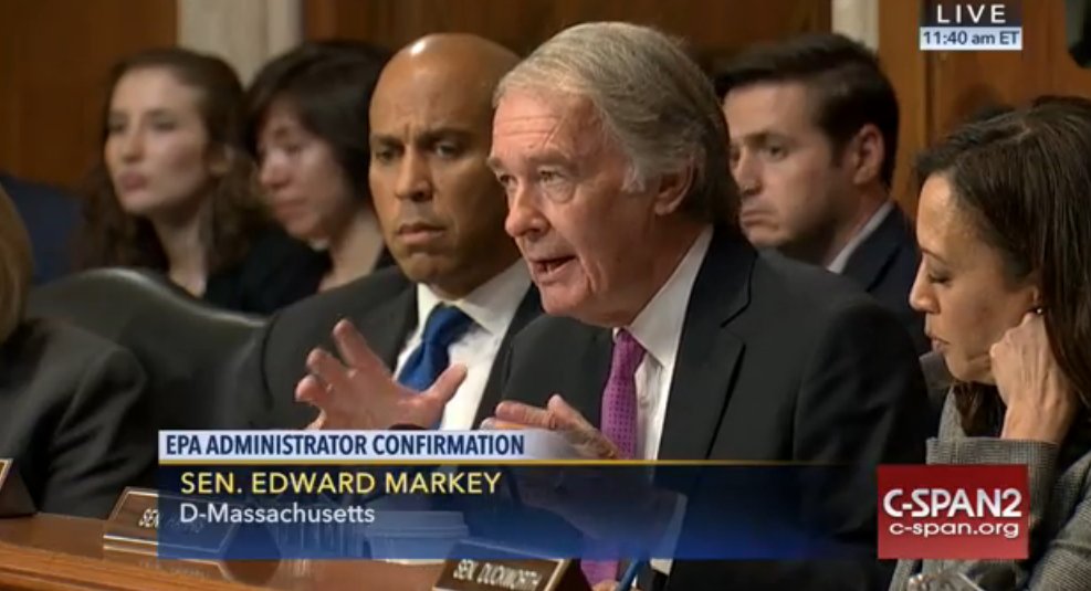 2. Markey: "Do you agree global warming is a hoax?" Pruitt: "I do not agree." Markey: "Something I think the president-elect should hear."