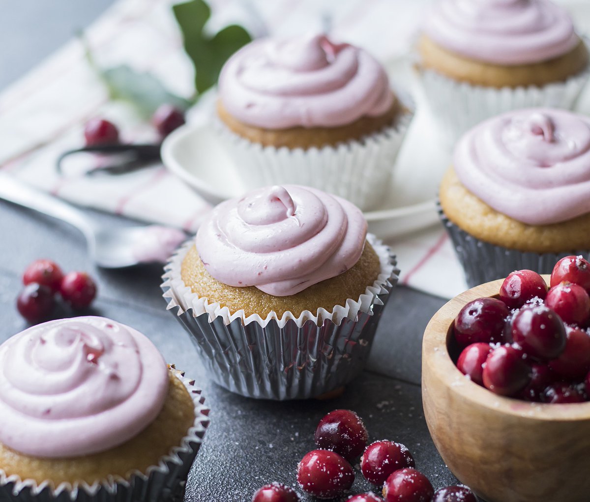 Celebrate 2017 in style with these Vegan Vanilla Cranberry Cupcakes.