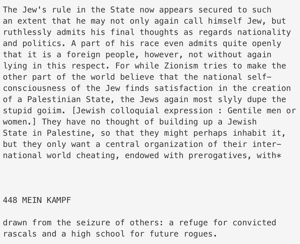Alex von Tunzelmann @alexvtunzelmannIt isn't often I tweet excerpts from Mein Kampf (!) but, re Ken's claim that Hitler "supported" Zionism: he didn't. pic.twitter.com/DgZ8KwLFDt0 ಮರುಟ್ವೀಟಿಸುವಿಕೆ 0 ಇಷ್ಟ -
