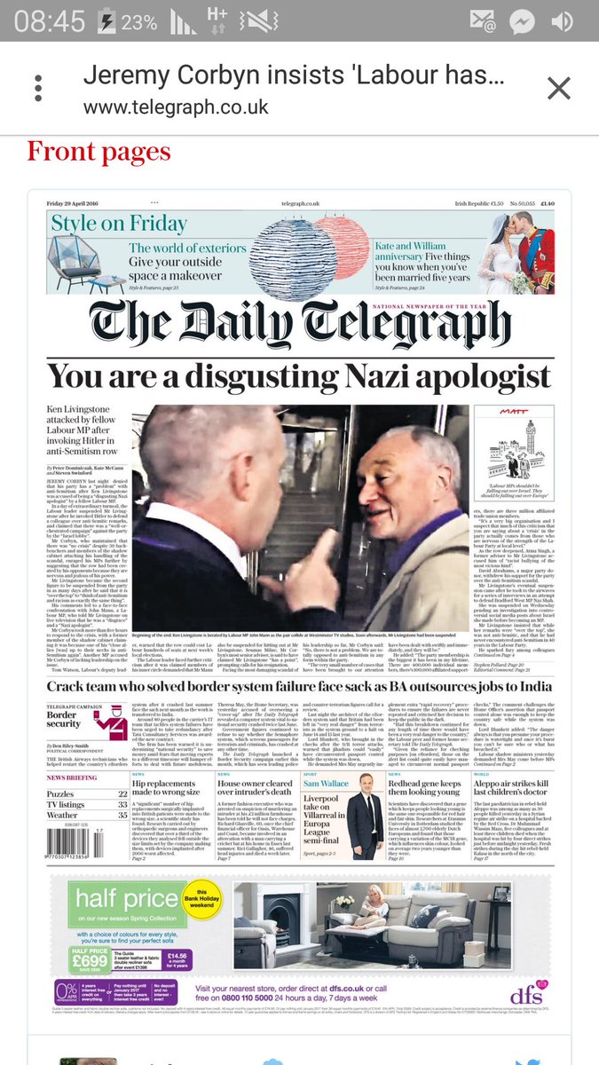 Ken, Labour and anti-Semitism on the front pages of major UK newspapers this morninghttps://twitter.com/NadavEyalDesk/status/725924539381608448 …