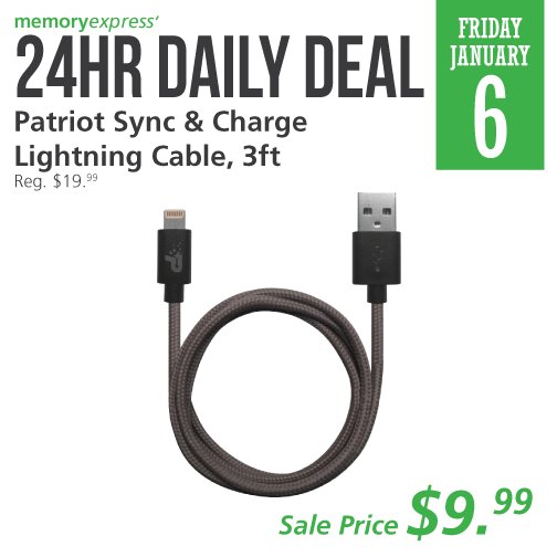 #24hrDailyDeal: Save 50% off the@patriotmemory Sync and Charge Lightning™ Cable! http://bit.ly/2gdUtms pic.twitter.com/GZeeHKkiLV