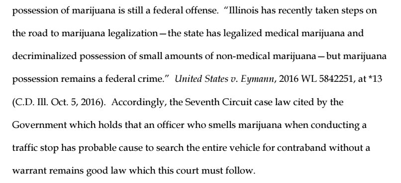 Fed. court: Doesn't matter if a state has decriminalized marijuana. If a police officer smells it, he's justified in conducting a search.pic.twitter.com/GZ8UUpYDo6